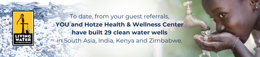 Help us help the children. The Hotze Health & Wellness Center team believes in giving back to those in need. When you refer a friend or family member to us who wants to restore their health, you are helping children in real need because for every referred person we see this year, we are donating a portion of our income to Living Water International.